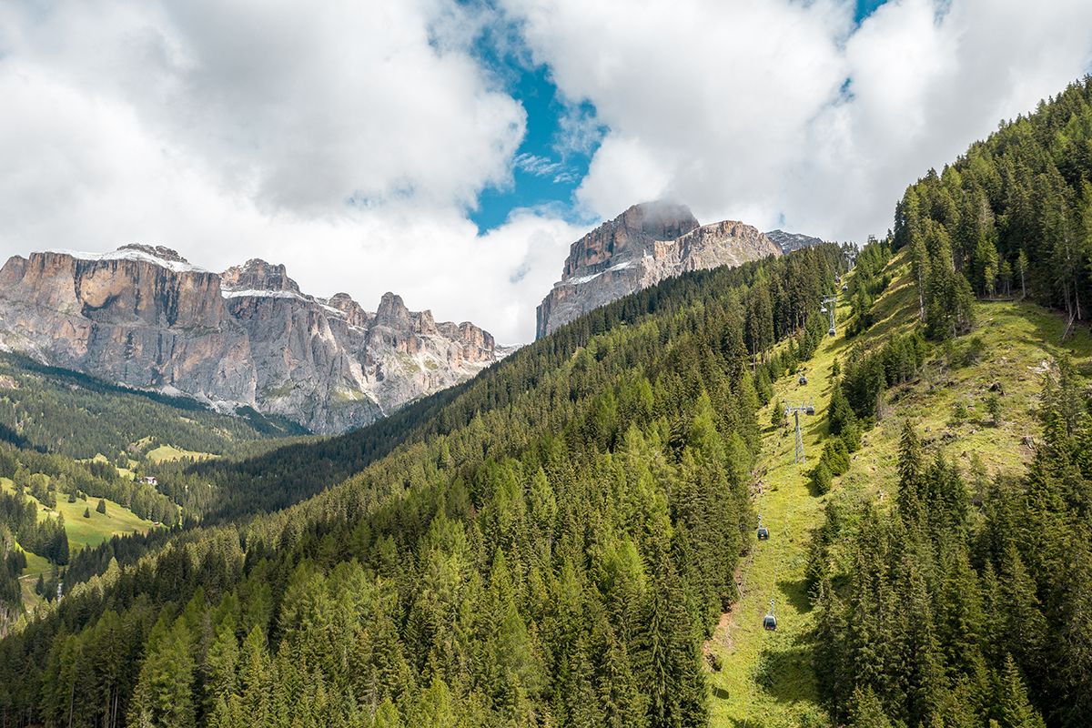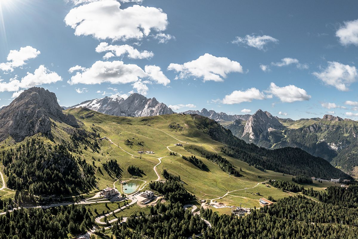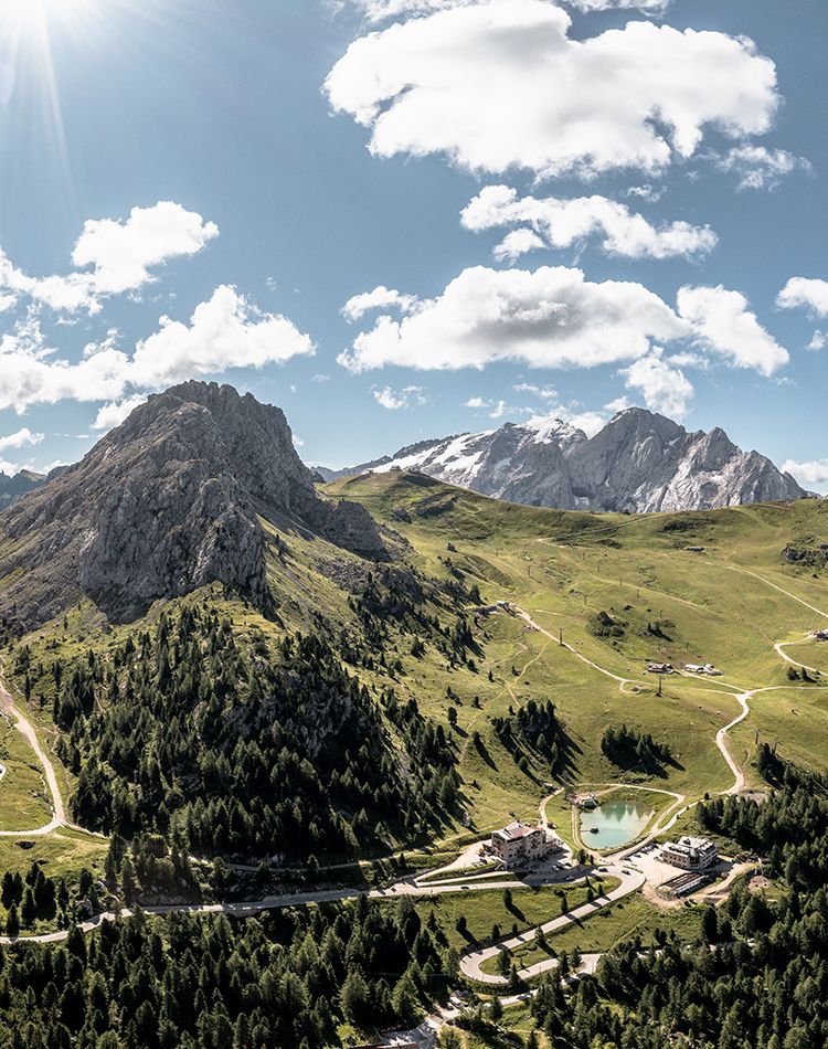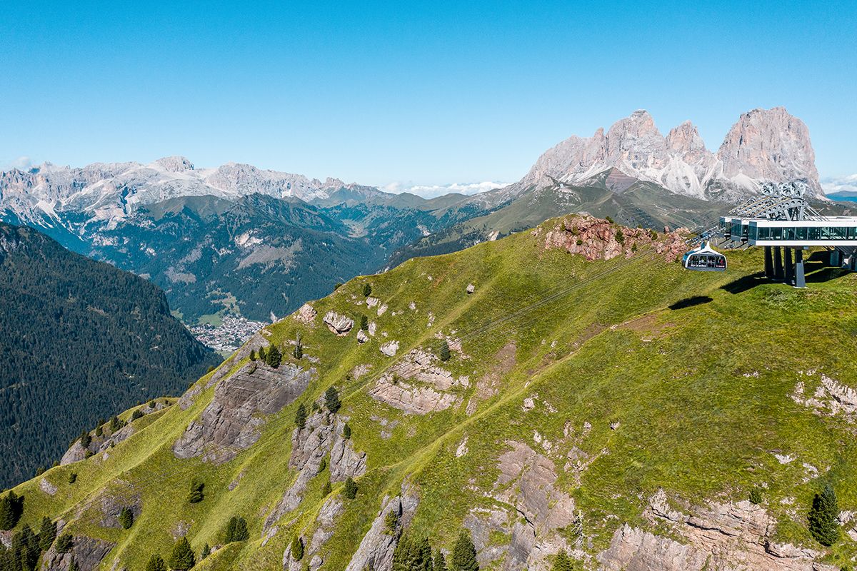 The trail leads to Passo Pordoi, where nature and landscapes merge into an evocative setting. After a short walk, you arrive at the Sass Pordoi cable car, which takes you to the Terrazza delle Dolomiti, at 2950 m, with unparalleled views.