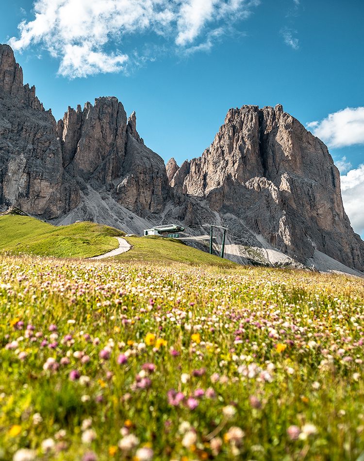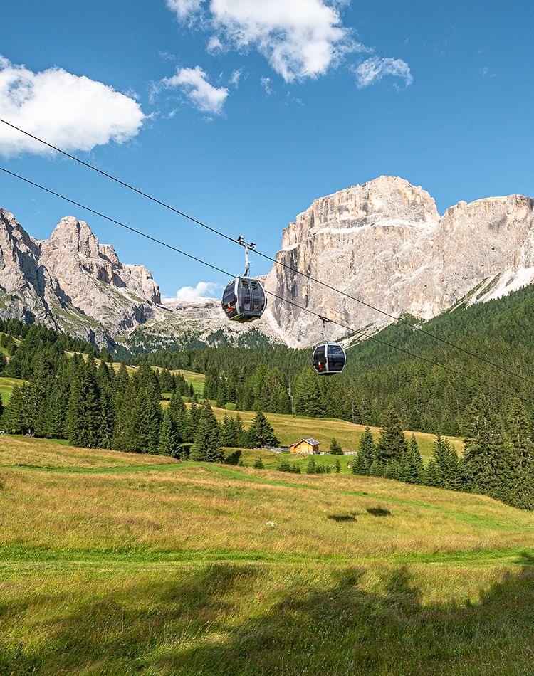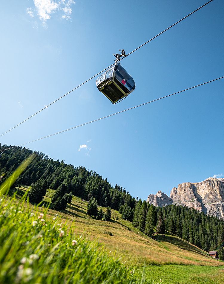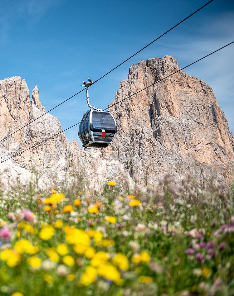 The Pradel gondola lift offers a comfortable and scenic journey, during which it is possible to admire the breathtaking beauty of Val Salei. The valley’s vibrant colors, with its rich floral and plant life, create extraordinary views set against the majestic Dolomites.