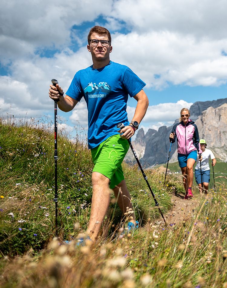 From the Pradel cable car arrival point, a short walk leads to the Sella Pass, an easy route that is suitable for everyone, enriched by the presence of cosy mountain huts for a refreshing break. This flat stretch offers breathtaking views and a unique experience in contact with nature.
