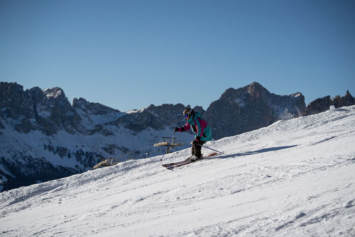 One of the most beautiful descents in the entire Val di Fassa. After a sunny start, you ski surrounded by woods, while the view opens up first onto the Catinaccio and then onto the rest of the valley. The slope alternates between fast sections and gentler slopes, offering ever-changing views. A pleasant and enjoyable descent, which also leaves room for some more adrenaline-fuelled passages. The finish is right next to the start of the ski lifts, so you'll be ready to go again in no time!