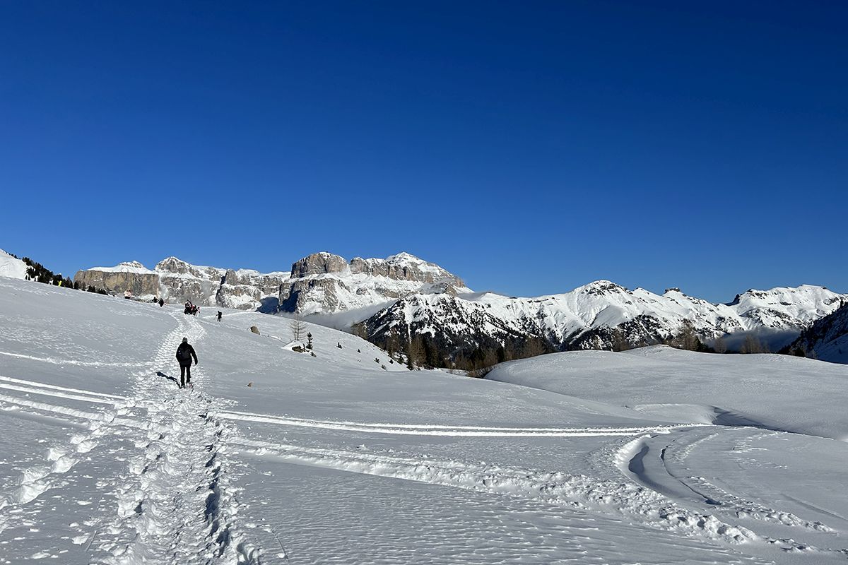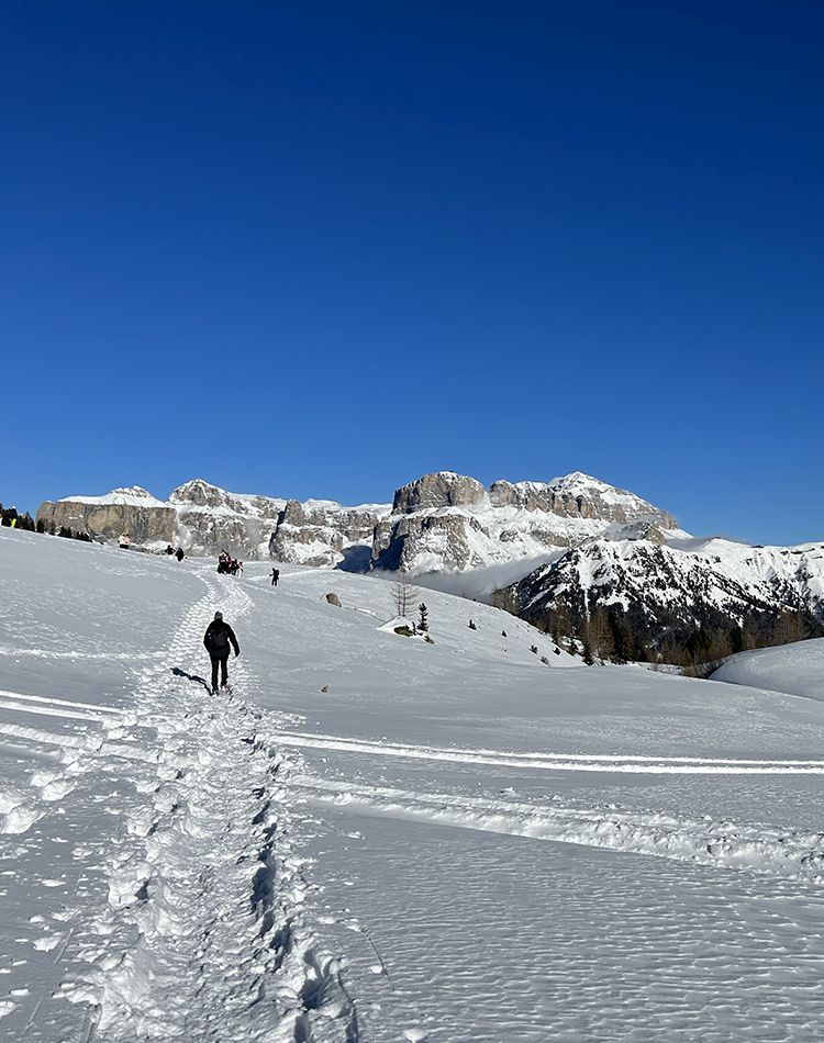 Oltre allo sci, al Ciampac è possibile anche fare delle ciaspolate. A quota 2100 metri ti aspetta un percorso ad anello per ciaspole di circa 3 chilometri, immerso in un paesaggio da favola, con ponticelli in legno e vista spettacolare sul Gruppo del Sella e sul Piz Boé. Per chi preferisce ciaspolare in questo luogo magico accompagnati da una guida, viene organizzata ogni mercoledì e venerdì una ciaspolata di gruppo e c’è anche la possibilità di partecipare alle ciaspolate guidate al pomeriggio per poi godersi un ricco aperitivo al tramonto.