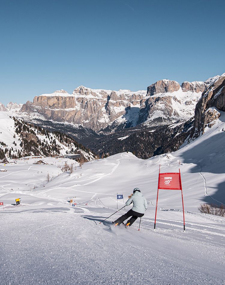 A 5 minuti dall’arrivo della cabinovia trovi il campo scuola del Ciampac, dove la Scuola Sci Canazei Marmolada organizza i corsi di sci e snowboard individuali e collettivi, e la pista blu, perfetta per famiglie e principianti. Nella skiarea ci sono poi cinque piste rosse e due piste nere: la variante nera Sella Brunech e la rinomata pista nera Ciampac. E per tutti coloro che vogliono mettersi alla prova, allo skilift Sasso di Rocca c’è anche un tracciato cronometrato ad accesso gratuito.
