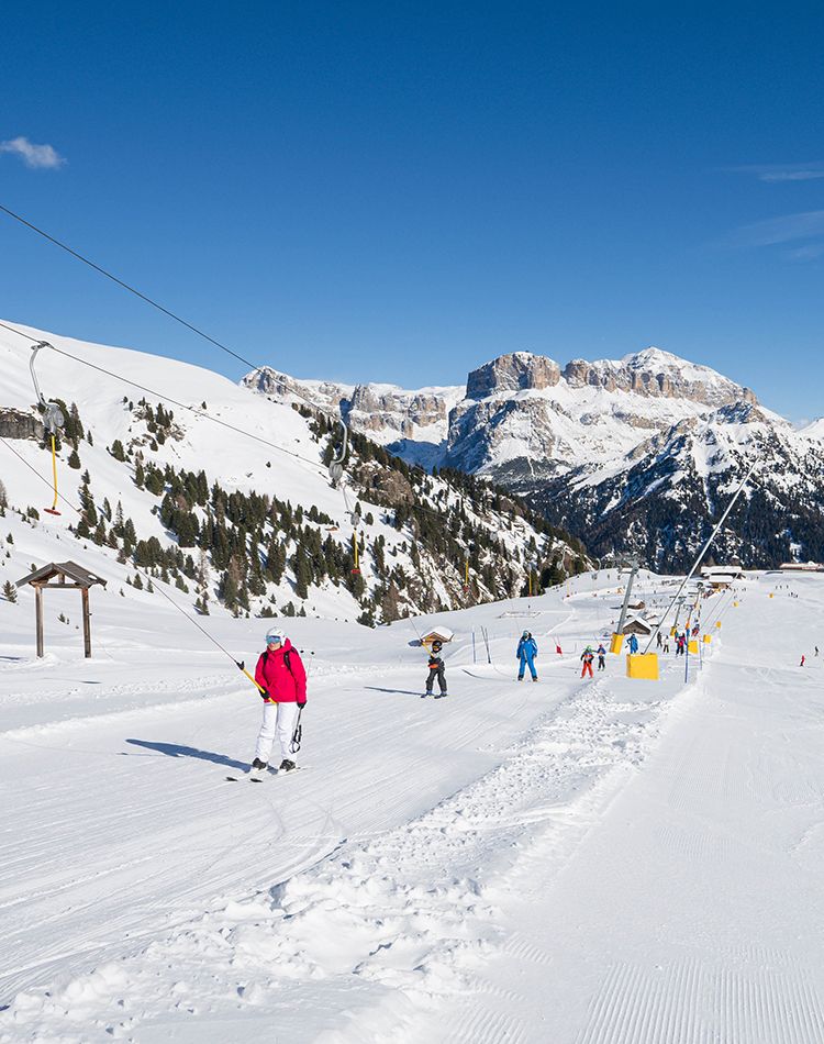 Situata sopra i 2100 metri, la Skiarea del Ciampac ti offre una vista spettacolare sulle Dolomiti e puro divertimento. Scegli tra piste di ogni livello: dal campo scuola alla famosa pista nera, passando per il tracciato cronometrato. Qui puoi vivere molto più che lo sci: ciaspole immerso nella natura, quattro rifugi accoglienti e il parco giochi Ciampark. Vuoi scoprire i segreti del mondo innevato? Partecipa all’attività “Dietro le quinte dello sci” e lasciati sorprendere!