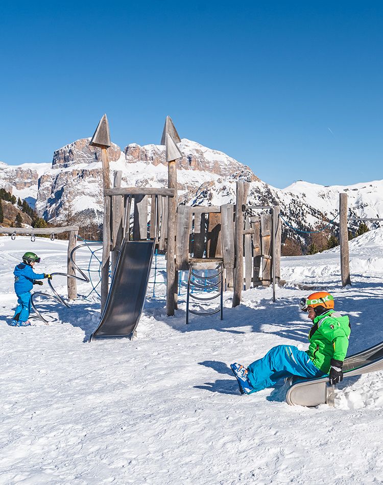 Il Ciampac ha tutto ciò che serve per trascorrere una giornata stupenda in famiglia sulla neve. Per i più piccoli, a soli 5 minuti dall’arrivo della cabinovia e vicino al campo scuola, c’è il parco giochi d’alta quota Ciampark, con giochi in legno e una piccola pista per divertenti scivolate sulla neve, ad accesso libero. Completa l’offerta il tappetino per fare i primi passi sugli sci, che si può utilizzare anche autonomamente per insegnare ai propri figli questo bellissimo sport.